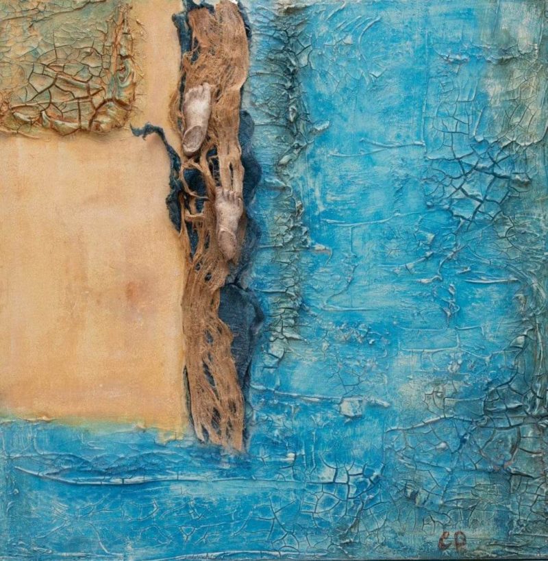 Πίνακας με τίτλο” Διαδρομή” που συμβολίζει την πορεία και την δύσκολη πολλές φορές ανάβαση μέσα απο γή και νερό.