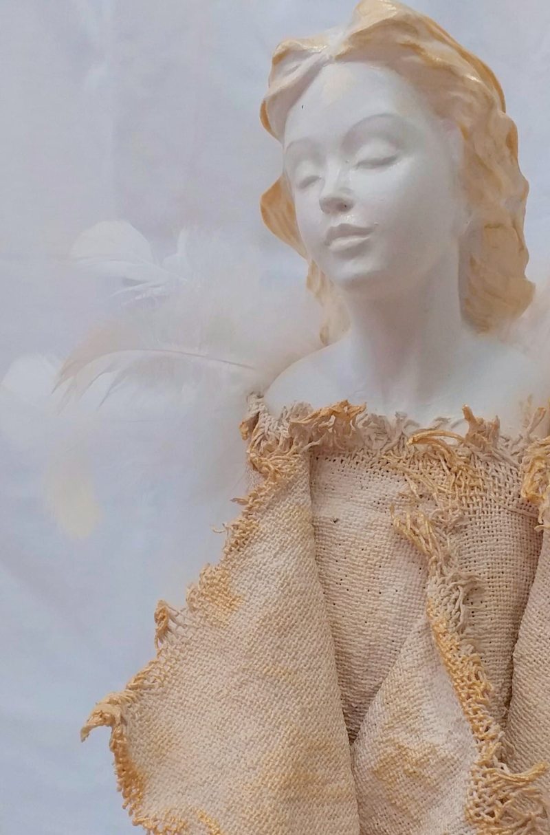 Statuette Angel with white wings on a base
