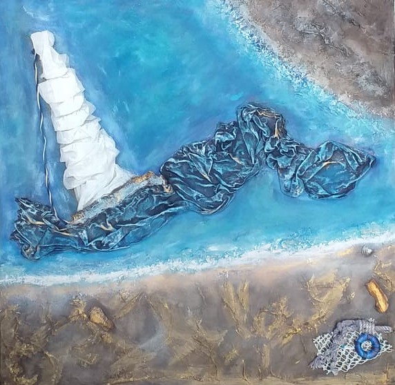 Canvas, fabric, wood and sea shells