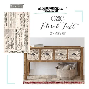 Ανακαλύψτε έναν νέο τρόπο να διακοσμήσετε τα έπιπλα και τα διακοσμητικά σας κομμάτια με το ριζόχαρτο Redesign Decor Tissue Paper. Ειδικά σχεδιασμένα για έπιπλα, αυτά τα ριζόχαρτα διαθέτουν ινώδη υφή κατασκευασμένη από μηχανή για λεπτή και μοναδική εμφάνιση. Το μεγαλύτερο πλάτος επιτρέπει την ευκολότερη χρήση, τοποθέτηση και ανθεκτικότητα, ενώ είναι ανθεκτικό στο σκίσιμο σε αντίθεση με τα λεπτότερα ριζόχαρτα Έτσι το αποτέλεσμα είναι πιο ζωντανό και το φινίρισμα πιο φυσικό. Για να εφαρμόσετε το ριζόχαρτο στην επιφάνειά σας και για να το σφραγίσετε χρησιμοποιήστε το Primer & Sealer μας.