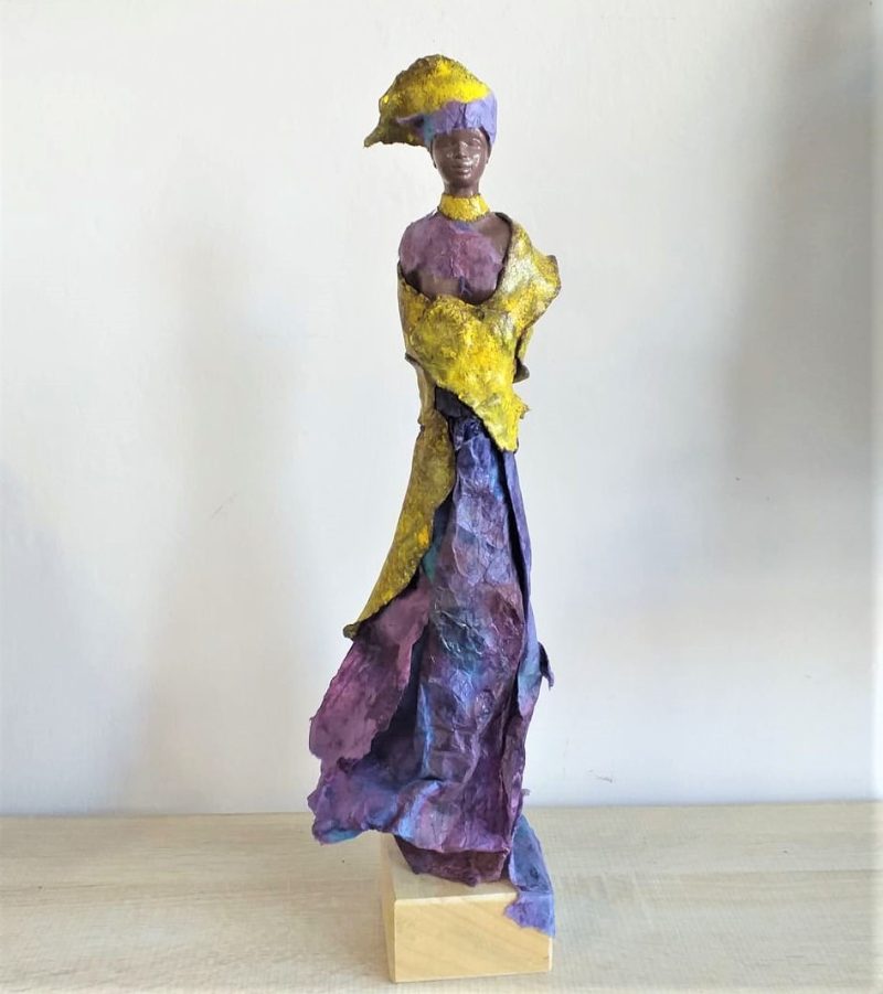 Sculpture African lady yellow / purple