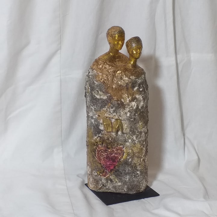 Sculpture pair in the colors of rock / stone, with embossed heart